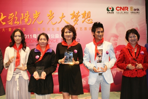 中广网北京5月10日消息(记者关宇玲)今天(5月10日), 由中央人民广播电台和中国光大银行共同主办、央广都市(北京)文化传媒有限公司和北京爱乐华夏文化艺术院承办的“光大·爱心宝宝——七彩阳光全国青少年才艺展评”2011母亲水窖公益活动新闻发布会在京召开, 中央人民广播电台副总编辑李国君、中国光大银行副行长林立、中国妇女发展基金会秘书长秦国英、国家教育部副总督学郭福昌、教育部国家艺术教育委员会副主任杨瑞敏等领导出席了本次新闻发布会。本次活动形象大使著名影视明星蒋小涵、童星阿尔法以及凯丽、耿莲凤、丁子俊、马艳红、童瑶等多位关爱青少年成长,关注母亲水窖的影视明星也出现在新闻发布会的现场。