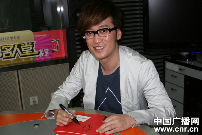 著名唱作人周传雄做客音乐之声 为网友签名留念(中广网 关宇玲摄)
