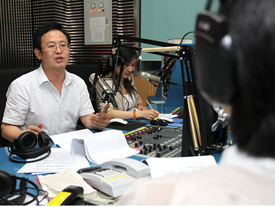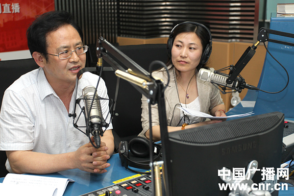 王勇平与主持人马烨在直播间(中广网记者涂傲摄)