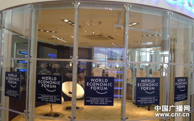 梅江会展中心的圆形玻璃采访厅,2012夏季达沃斯论坛,天津梅江会展中心中,以白色为主色调,搭配玻璃窗帷,整个会场给人以通透明亮的观感。(中广网记者 陈晓冉 摄)