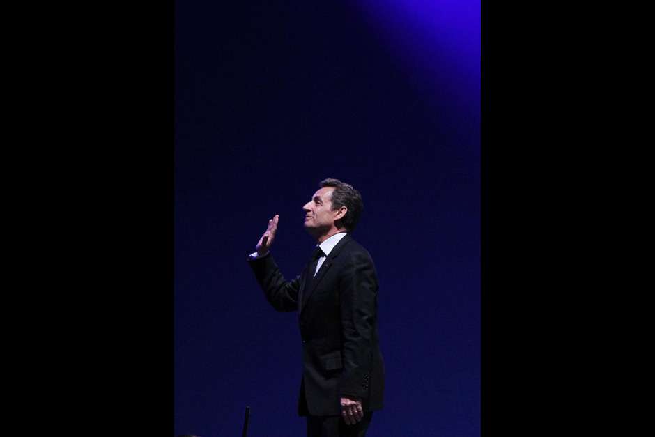 4月11日,法国现任总统、人民运动联盟候选人尼古拉·萨科齐在巴黎举行的竞选集会上发言。当日,约1500名地方民选代表出席萨科齐在巴黎医疗保险互助会礼堂举行的竞选集会。萨科齐表示,如果再次当选,他将对地方市镇的教育、医疗等方面进行全面改革。(图片来源:新华社)