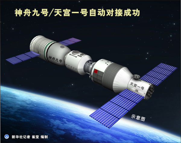 2012年6月18日 图表:神舟九号/天宫一号自动对接成功 新华社记者 崔莹 编制