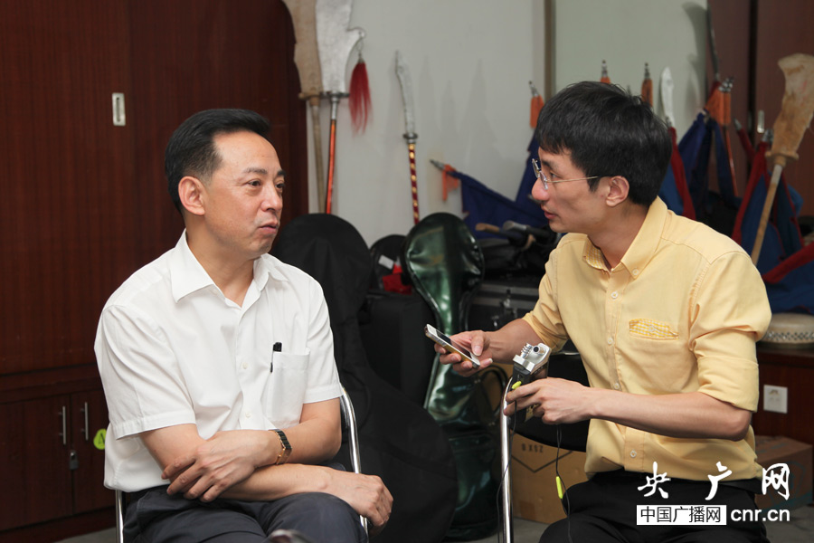 京剧表演艺术家于魁智正接受中央人民广播电台记者专访(央广网记者 赵娜娜 摄)