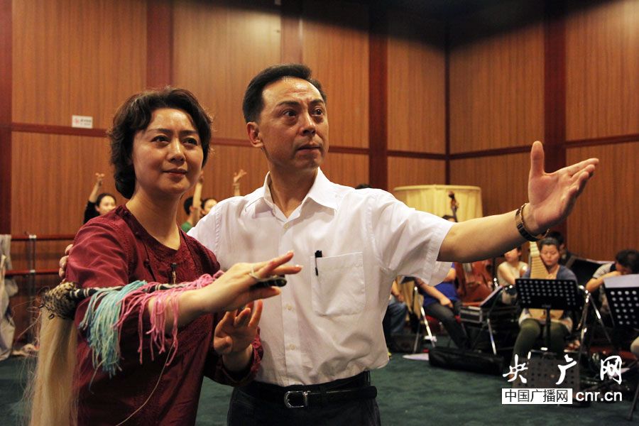 京剧表演艺术家于魁智、李胜素正在排练当中(央广网记者 赵娜娜 摄 )