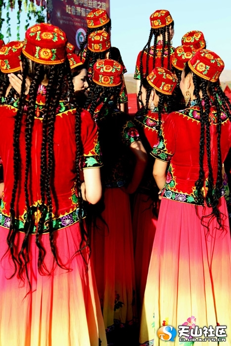 2012年8月26日,第二十一届中国丝绸之路吐鲁番葡萄节开幕式。节日中盛装的新疆美女。