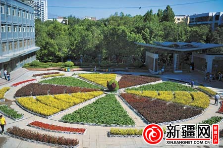 日前,在市体育公园门前,一座面积约3000平方米的“同心”花坛落成,11万株花草“同心协力”,喜迎第二届中国-亚欧博览会。