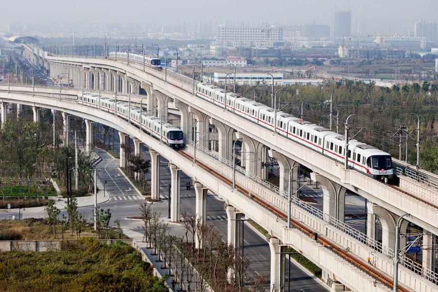 中国南车株机公司研制的地铁在上海11号线运行,服务世博会