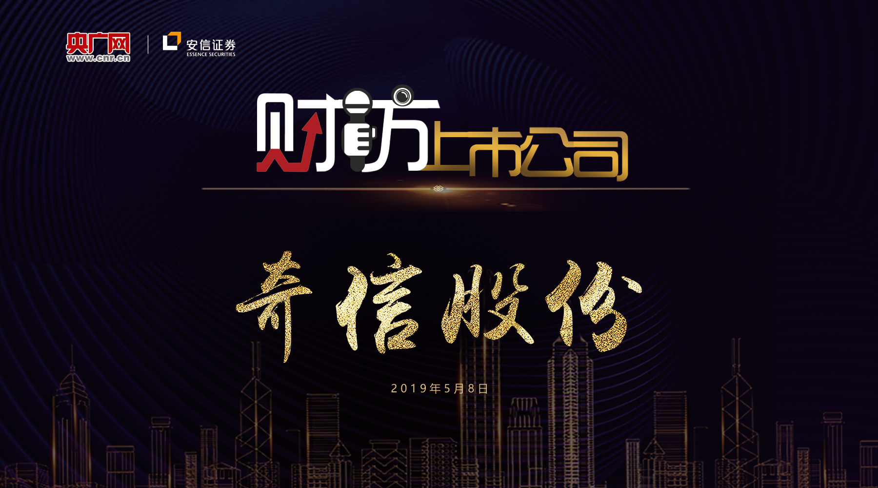 由中央广播电视总台央广财经专业团队打造的融媒体旗舰品牌栏目<财访·上市公司>,将于2019年5月8日,走进奇信股份(002781)深圳总部,并携手安信证券,与企业高管团队、机构投资者、中小投资者、券商研究员一同实地调研上市公司,透视装饰行业健康智慧人居的升级之路。