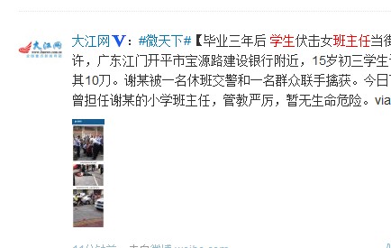 360搜索央广新闻SMALL > 15岁学生当街捅女班主任10刀