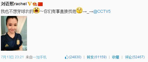 比赛结果你知我知,刘语熙妹子也在赛前发微博撒娇避祸:“我也不想穿球衣的,你们有事直接找CCTV5!”