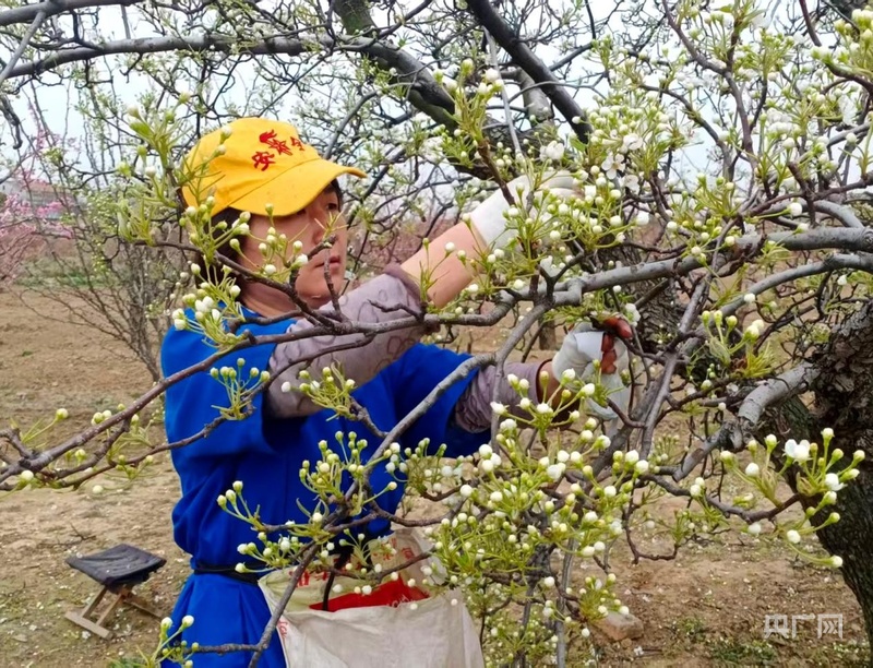 安徽砀山:春日梨园“摘花忙” 巧手育出“致富香”