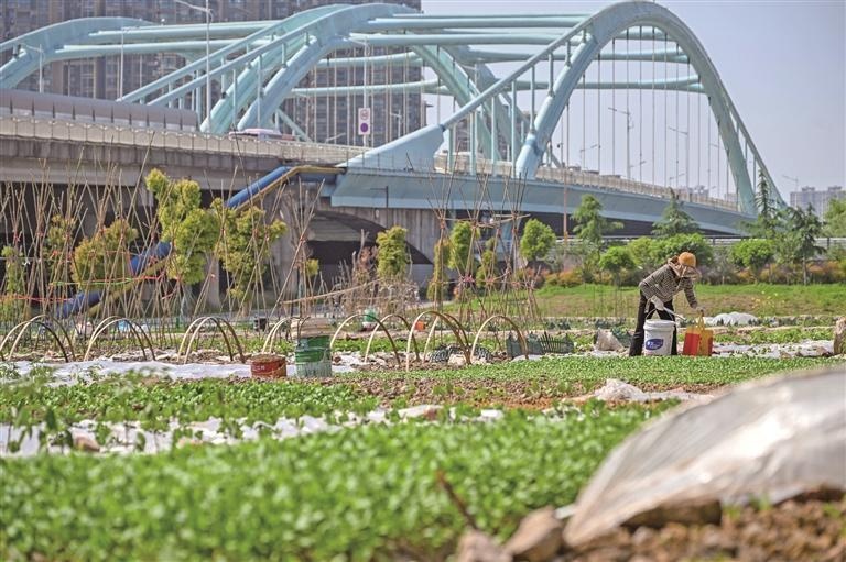 4月19日,芜湖市弋江区南沿河旁的共享菜园内绿意初显,市民们抢抓农时移栽菜苗、修整地块,一派繁忙的田园景象。