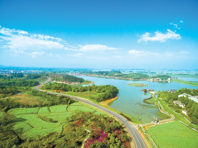徜徉在杏花村文化旅游区,山水相连,风景秀丽,水塘边荷叶迎风招展,湿地上三五只牛背鹭栖息觅食,一派田园风光。 “在35平方公里的总面积中,水域面积13.76平方公里,湿地面积18.89平方公里,林草覆盖率90%,维管植物114科,脊椎动物35目84科,生态本底优良。 ”张华介绍,依托优美的自然风光,旅游区加快文化旅游资源整合,计划建设梅州晓雪、唐茶村落等古杏花村十二景,打造了独特的乡村田园风光。目前,杏花村文化旅游区发展势头良好,吸引了众多游客前来观光游览,自2015年10月开放以来,已经陆续接待游客266万人次,旅游收入突破4亿元。