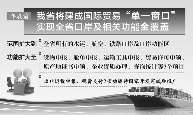 作为复制推广上海自贸区等试点经验的成果,国际贸易“单一窗口”是指参与国际贸易和运输的各方,通过单一的平台提交标准化信息和单证,以满足相关法律法规及管理要求,最终实现全省口岸之间信息互换、监管互认、执法互助,中央与地方、地方与地方国际贸易“单一窗口”的互联互通。企业只需要一次性向贸易管理部门提交相应的信息和单证,即可由统一平台进行一次性高效处理,不再需要拿多个认证、跑多个部门。