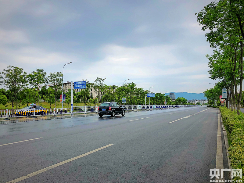 雨后的齐山大道上几乎看不到积水。(央广网记者徐鹏 摄)