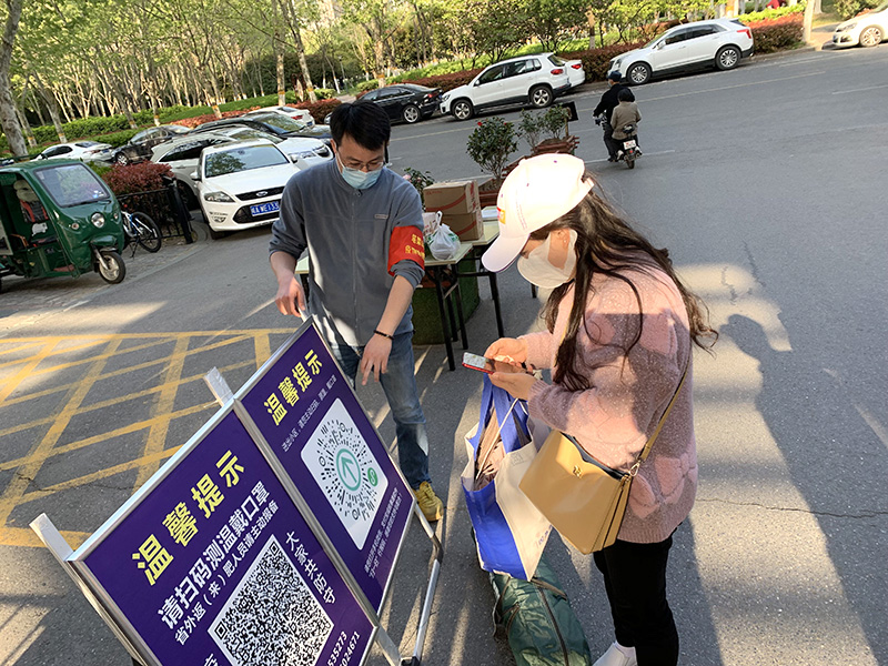 根据社区指派,我被安排在蜀山区笔架山街道水墨兰庭北区的执勤点,主要任务是督促进出小区居民佩戴好口罩,同时叮嘱扫码、测温,并对小区外来人员进行信息登记等。
