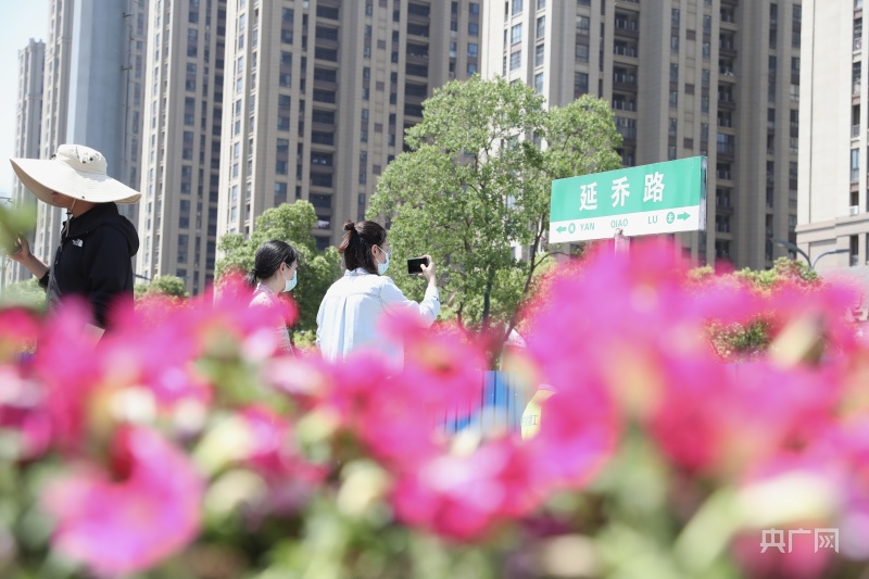 摆满鲜花的延乔路(央广网发 张宣剑摄)