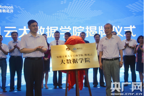 央广网马鞍山7月16日消息(记者徐鹏 通讯员李加稳)2018年7月15日上午,安徽省首家“腾讯云大数据学院”落户安徽工业大学工商学院。中国工程院院士、教育部工程研究中心主任桂卫华、马鞍山市副市长马少华共同为大数据学院揭牌。