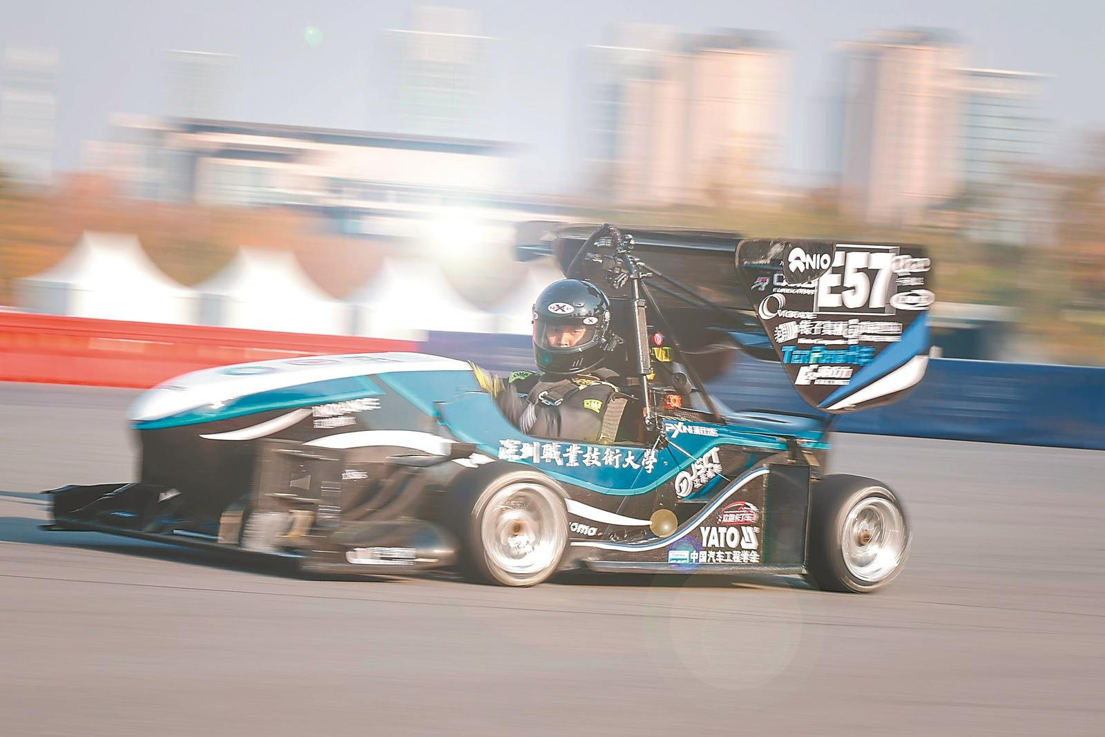 11月21日,车手在进行“8字”绕环比赛。当日,由中国汽车工程学会主办的2025中国大学生电动&无人驾驶方程式大赛在合肥市骆岗公园举行,百余支车队到场参赛。