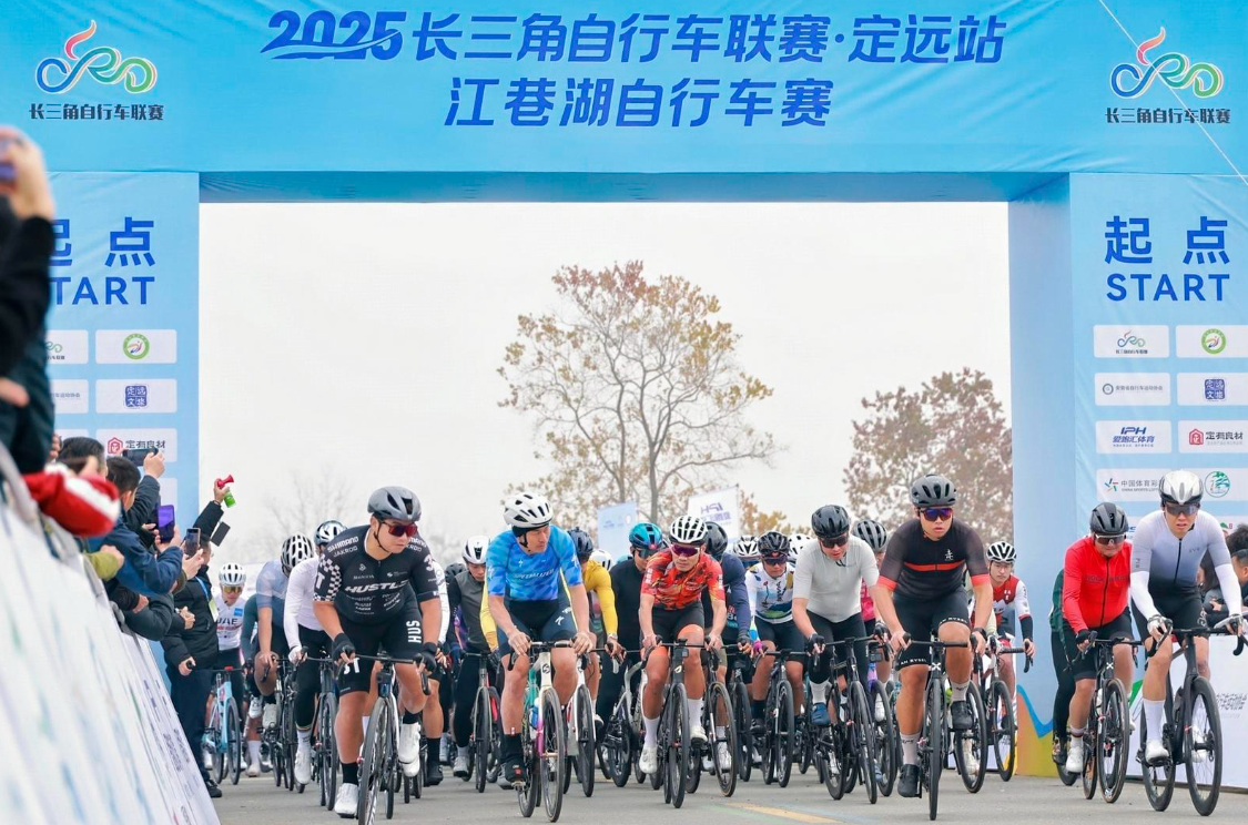 11月23日,由长三角自行车运动联盟、安徽省自行车运动协会主办的2025年长三角自行车联赛·定远站江巷湖自行车赛在定远江巷湖畔启幕。