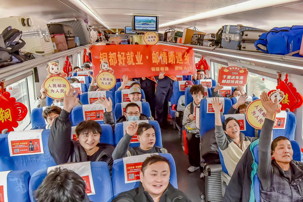 2月10日10时5分,G7088次列车从上海站缓缓驶出。与往日不同的是,这趟列车的两节车厢有些特殊——150名在沪务工的铜陵人,首次乘上了家乡政府包下的高铁专厢专列,踏上温暖的回家路。
