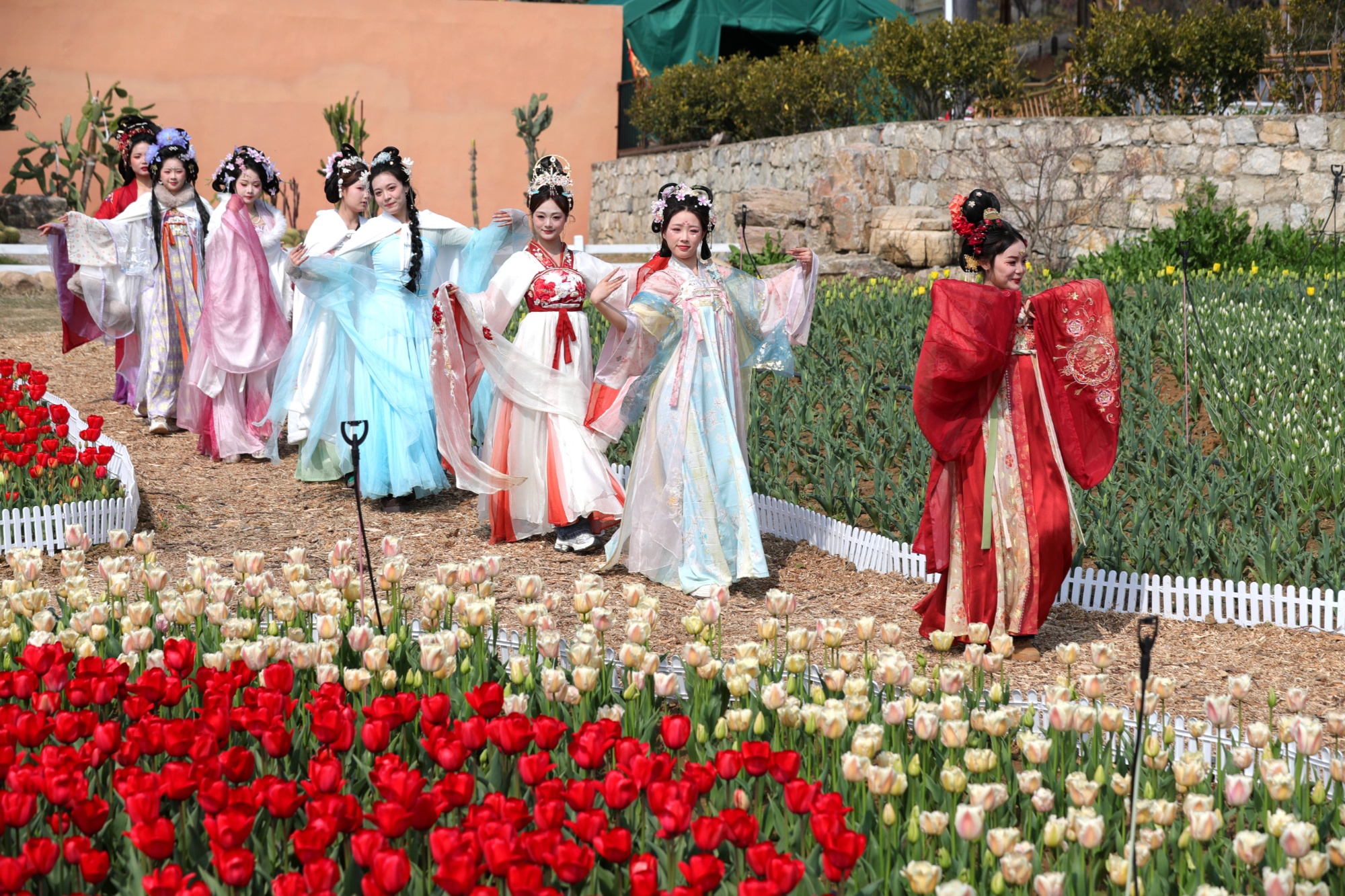 近日,安徽省蚌埠市禹会区禾泉小镇景区内的30万株郁金香花开,周边的市民游客趁着周末春光,穿梭在花海与“花仙子”之间,不时驻足观赏,拍照留念。