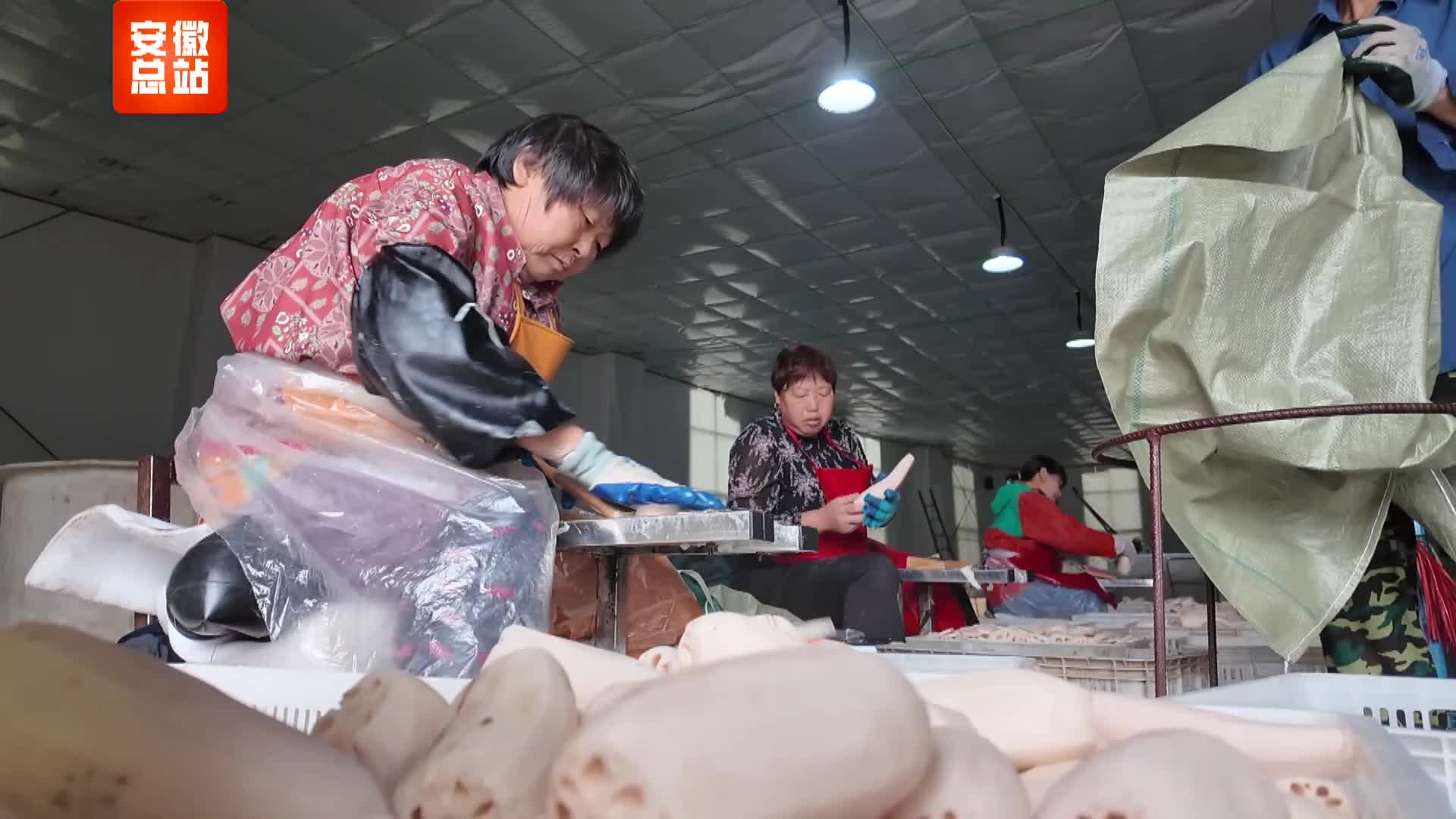 金秋时节,安徽五河县的一处莲藕种植基地内一派繁忙景象。田埂上,农户们踩着湿润的泥土,手持高压水枪,将藏于淤泥中的鲜藕逐一冲出。洁白脆嫩的藕节裹着泥浆被小心拾起,与连片摇曳的荷叶共同绘就一幅生动的秋日丰收图。