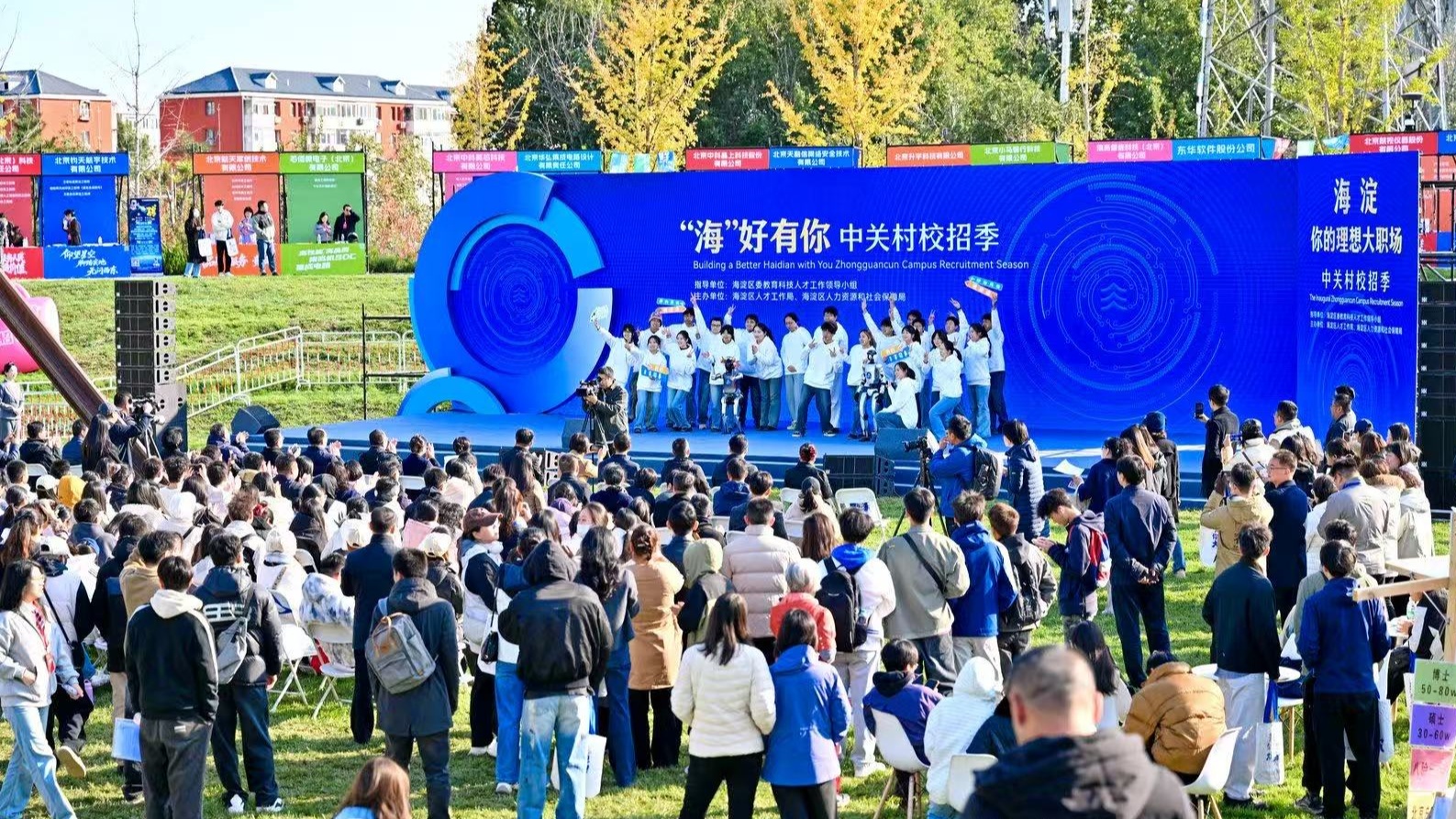 10月18日,“海”好有你——中关村校招季启动仪式暨海淀区2025年秋季综合双选会在京张铁路遗址公园举行。