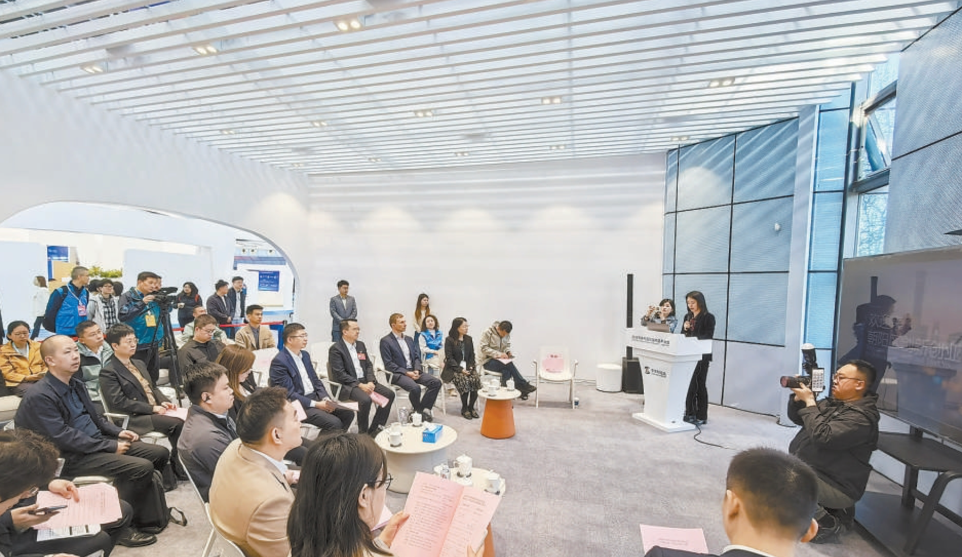 一处小小的半开放空间、三张圆形小茶几、二三十人促膝围坐——2026中关村国际技术交易大会“区长会客厅”,简简单单的布置非常接地气,拉近了大家交流的距离。最近几天,17场国际化的供需对接活动将在这里密集举行。