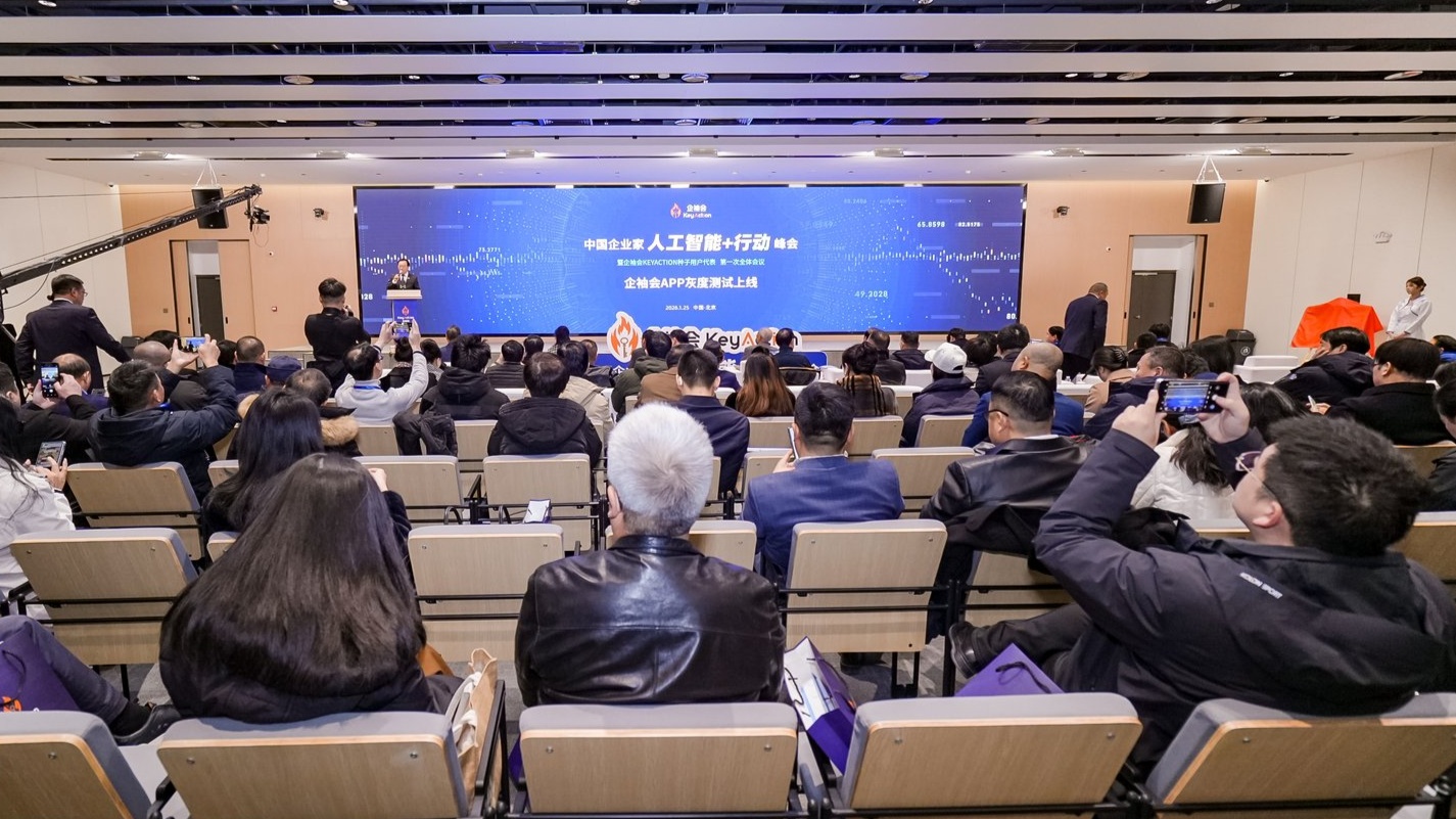 1月25日,中国企业家“人工智能+行动”峰会暨企袖会种子用户代表第一次全体会议在北京中关村AI北纬社区举办。