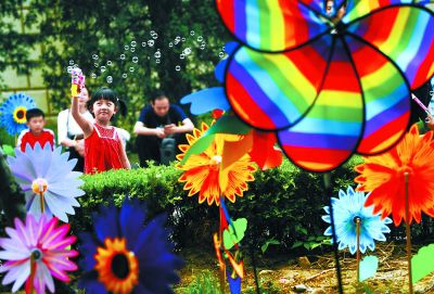 昨天,石景山游乐园推出2018“春之韵”荷兰风车体验活动。本报记者 蔡代征摄