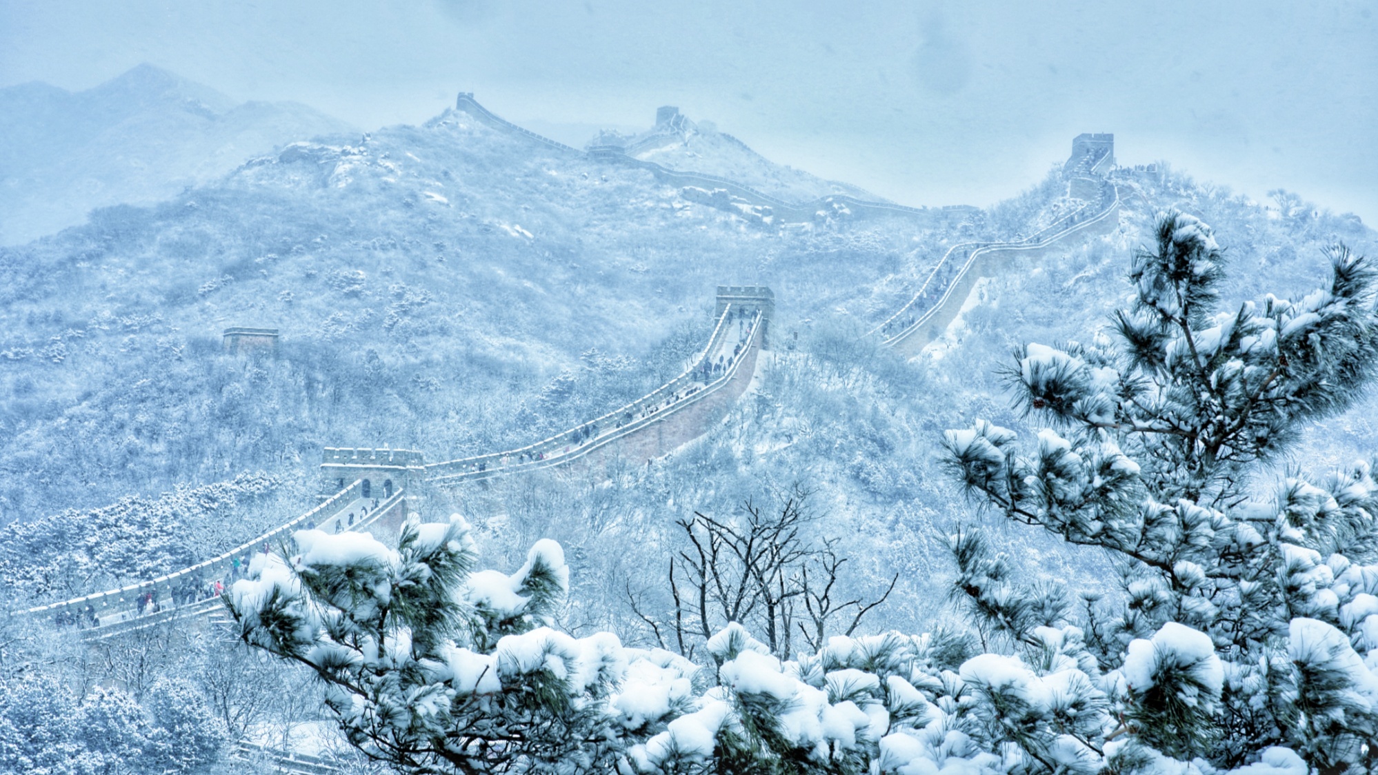 北京八达岭长城景区呈现出“冰封雪飘”壮美画卷。