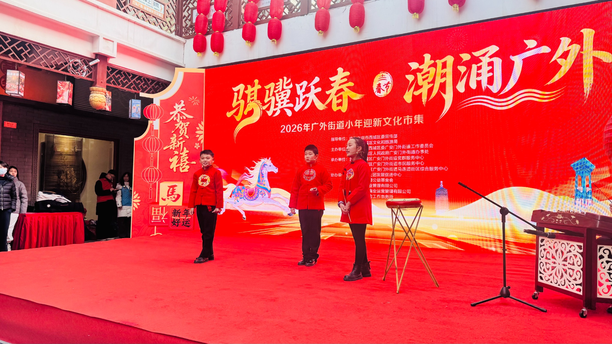 2月10日,北京市西城区广外街道“骐骥跃春 潮涌广外”小年迎新文化市集在马连道第三区文化广场热闹开市。