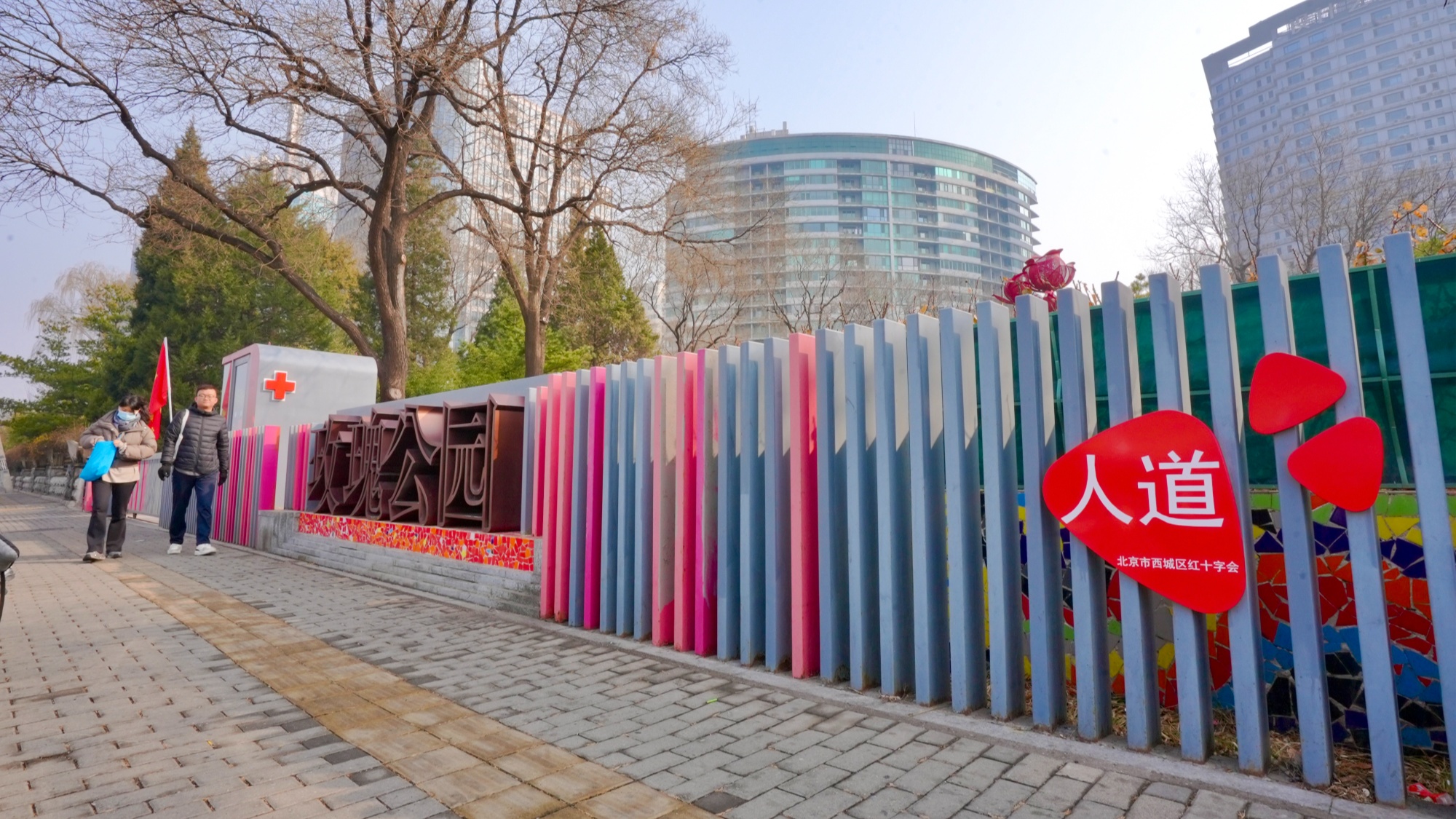 红十字元素融入北京西城街角 玫瑰公园焕新亮相