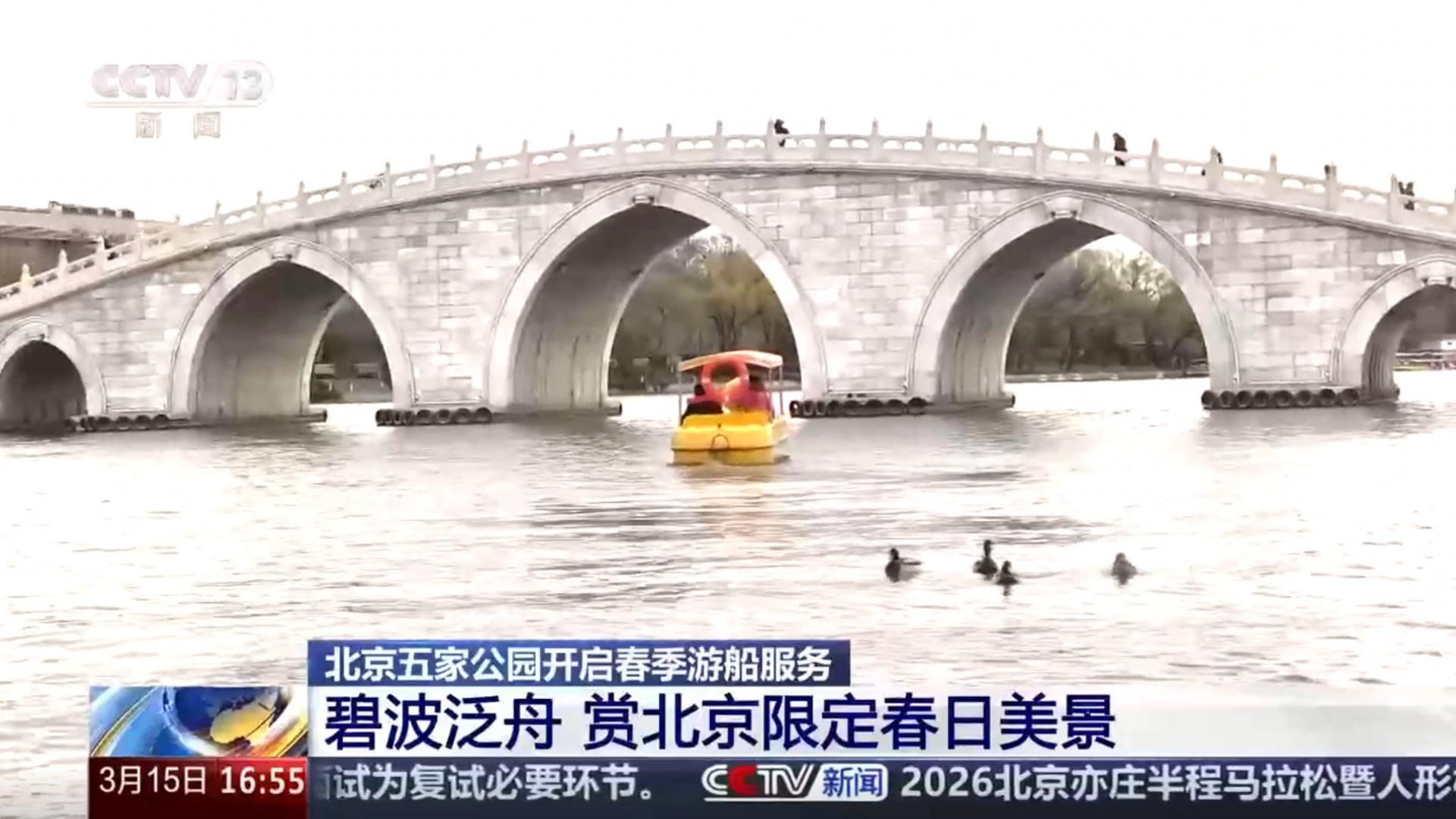 北京五家公园开启春季游船服务,碧波泛舟,赏北京限定春日美景。