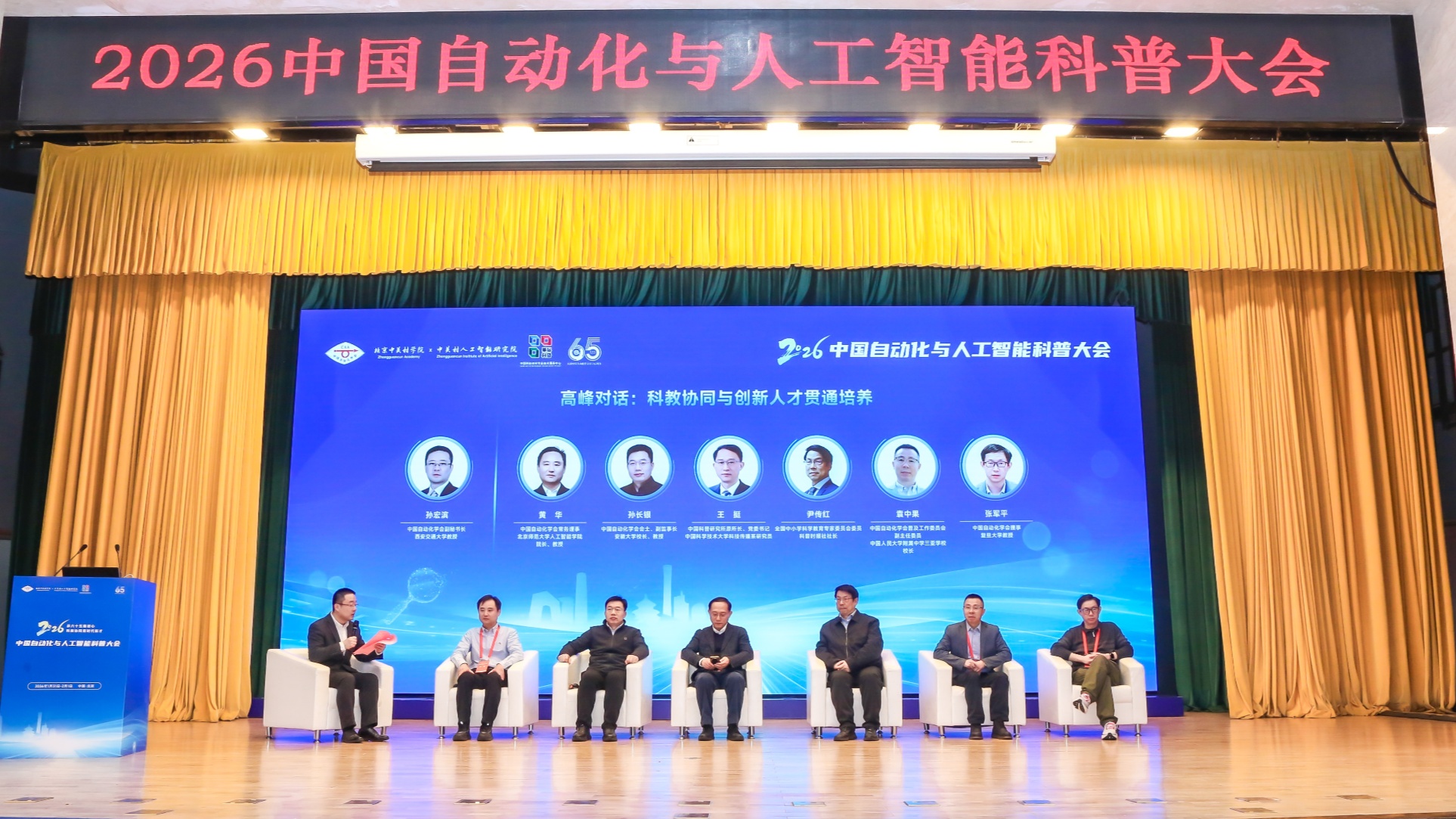1月31日,北京西郊宾馆,“科教协同与创新人才贯通培养”高峰对话在2026中国自动化与人工智能科普大会上进行。