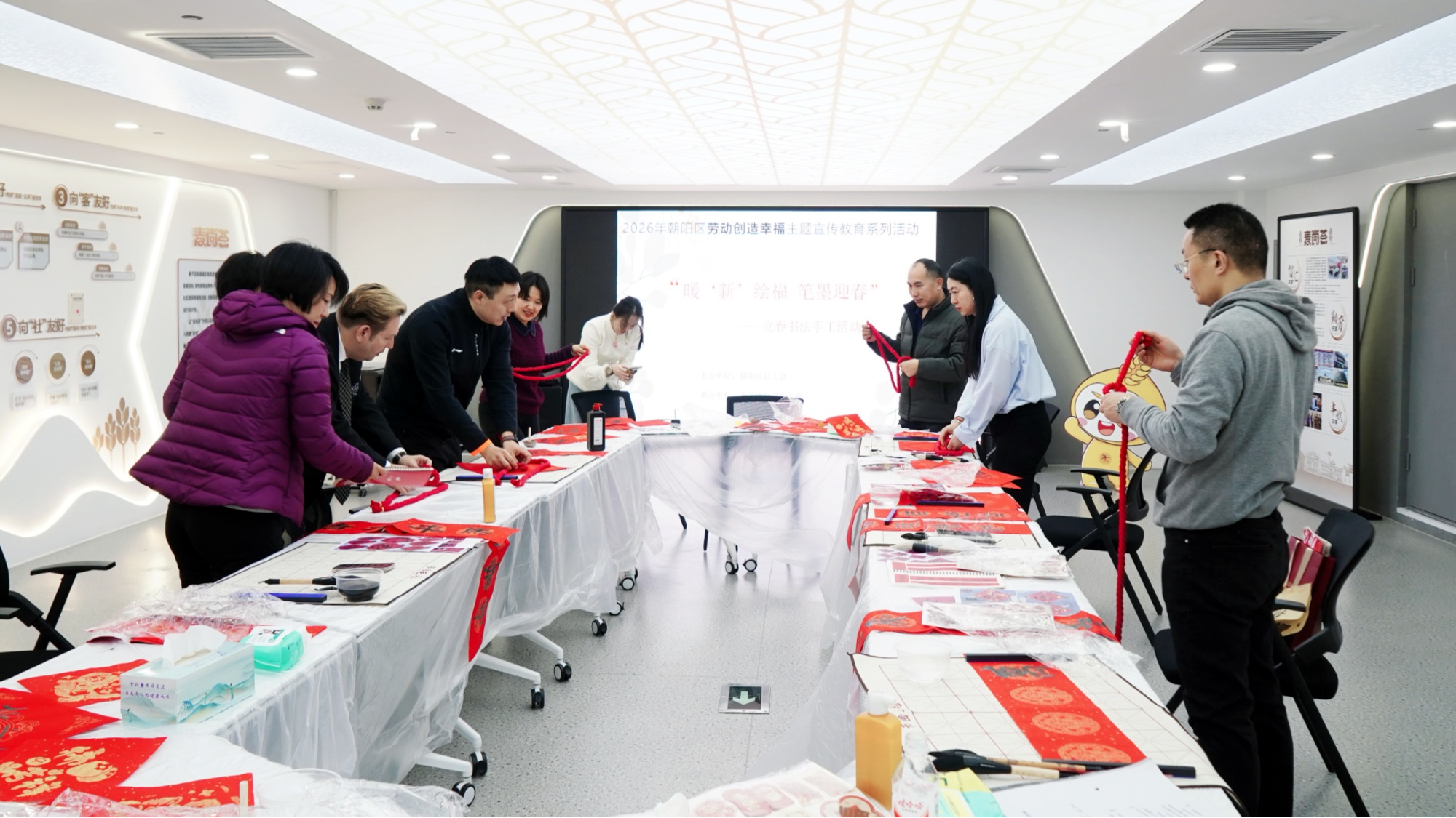 2月4日,北京市朝阳区麦子店街道总工会组织开展“暖‘新’绘福,笔墨迎春”活动。