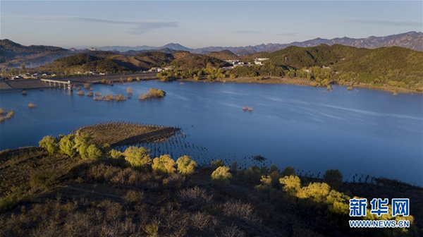 这是北京密云水库秋色(10月30日无人机拍摄)。