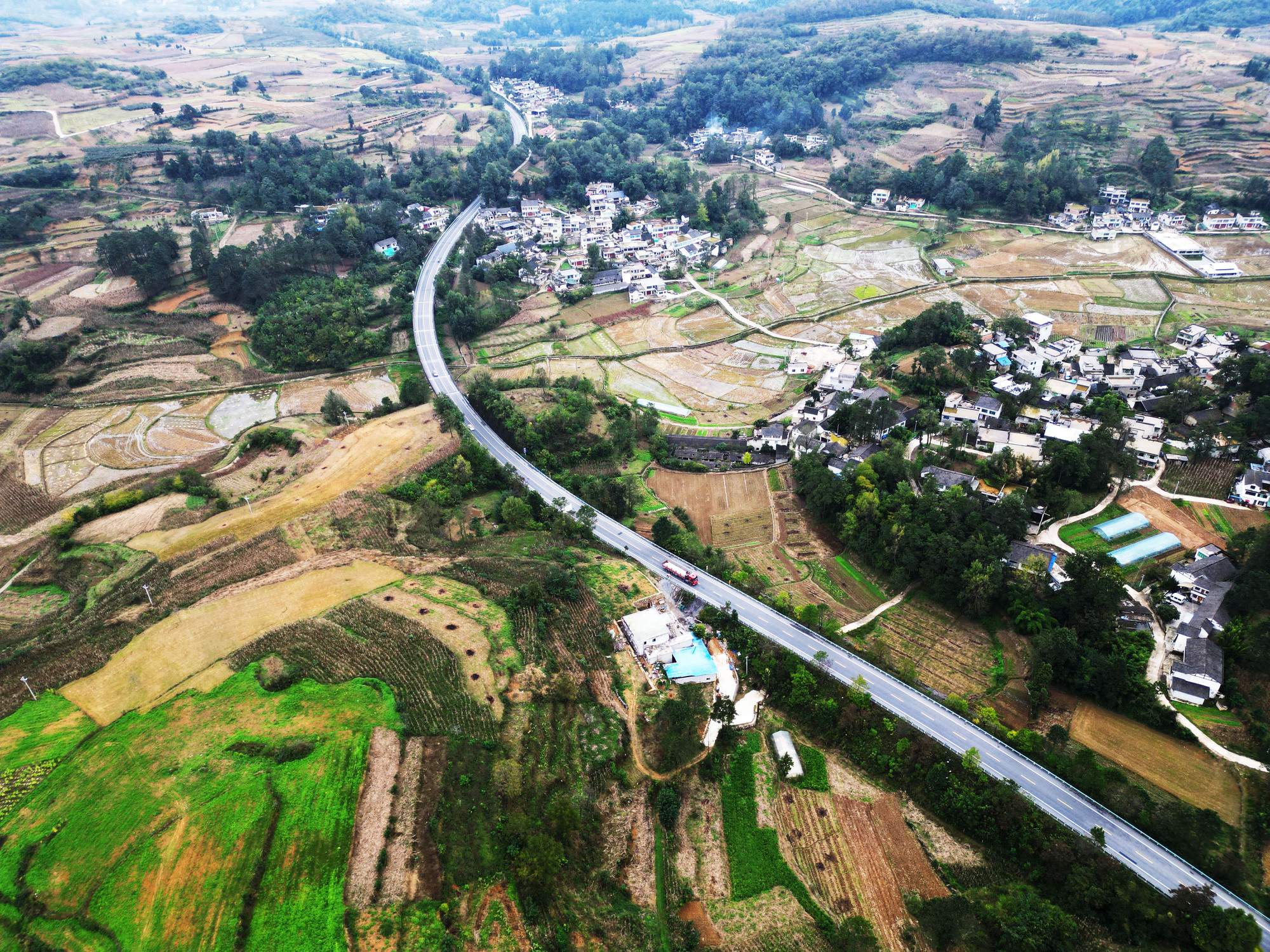 时值暮秋,贵州省黔西市锦星镇新街社区一片如画景致。青黄交织的田园,与错落有致的村落、蜿蜒的公路、如黛的远山和谐相融,构成了一幅景美人和的乡村画卷。