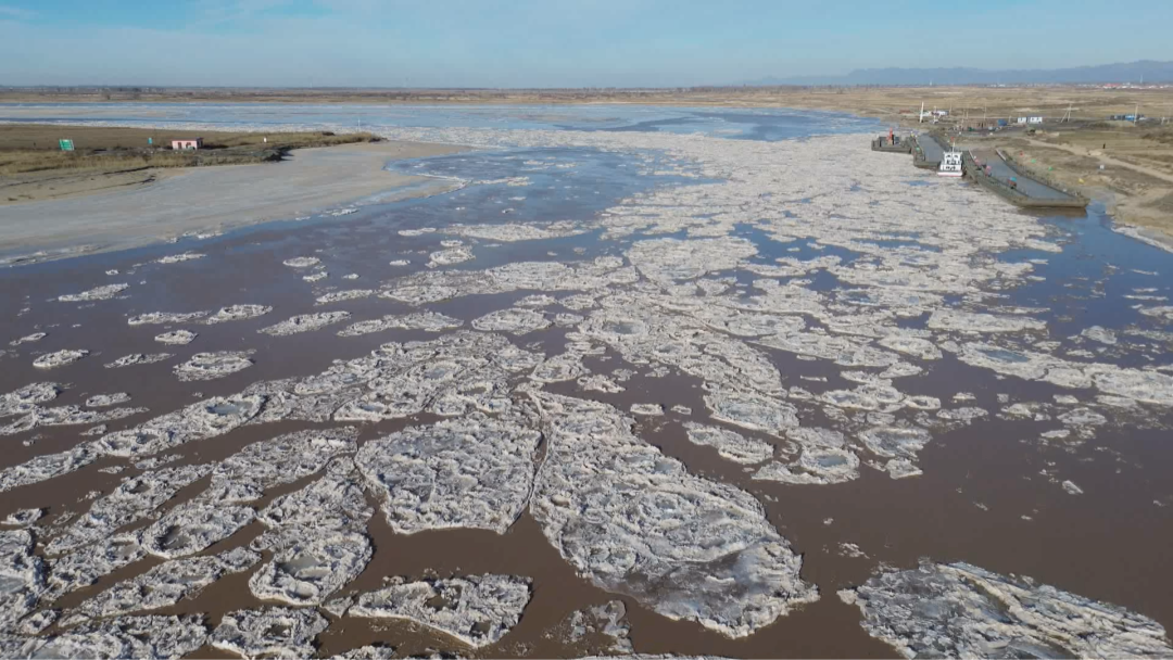 黄河包头市土右旗段流凌盛景如画