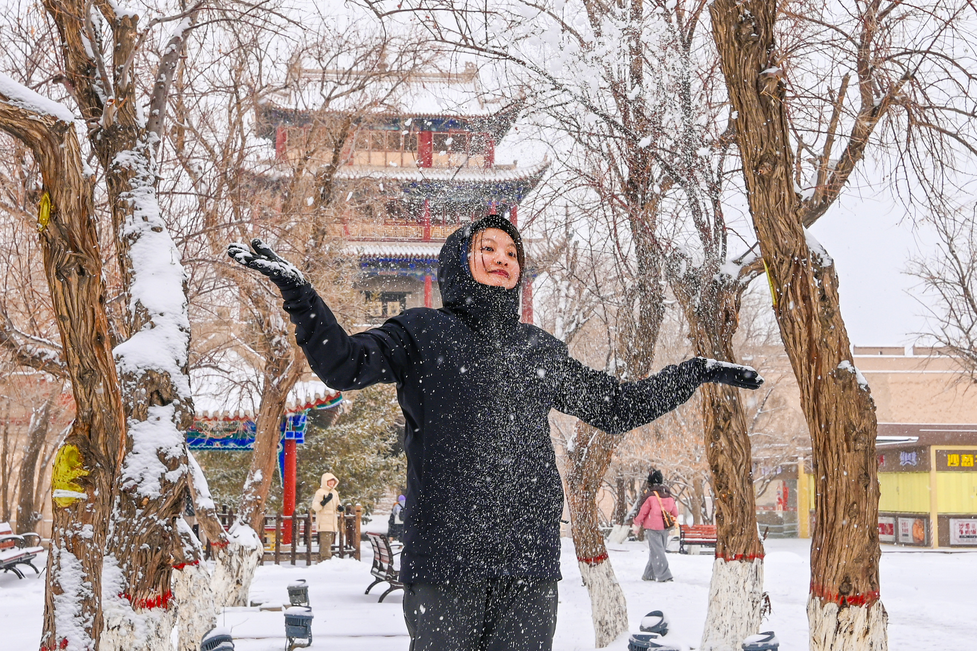 12月19日,漫天飞雪静落甘肃嘉峪雄关,让巍峨关隘装扮出水墨意韵,在壮美之余,更是增添了温婉静谧之美,吸引游客探访体验。