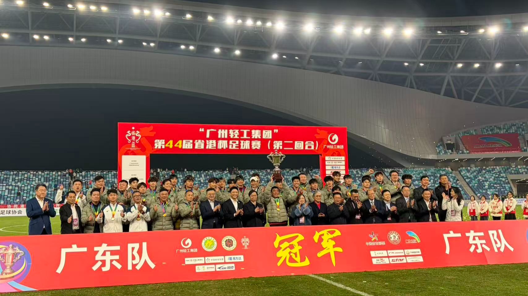 这是广东队第27次捧起省港杯的冠军奖杯。