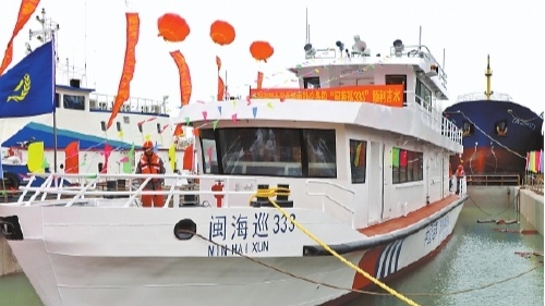 11月10日下午,福建省首艘电动公务船“闽海巡333”吉水(即新船下水)仪式在平潭举办。