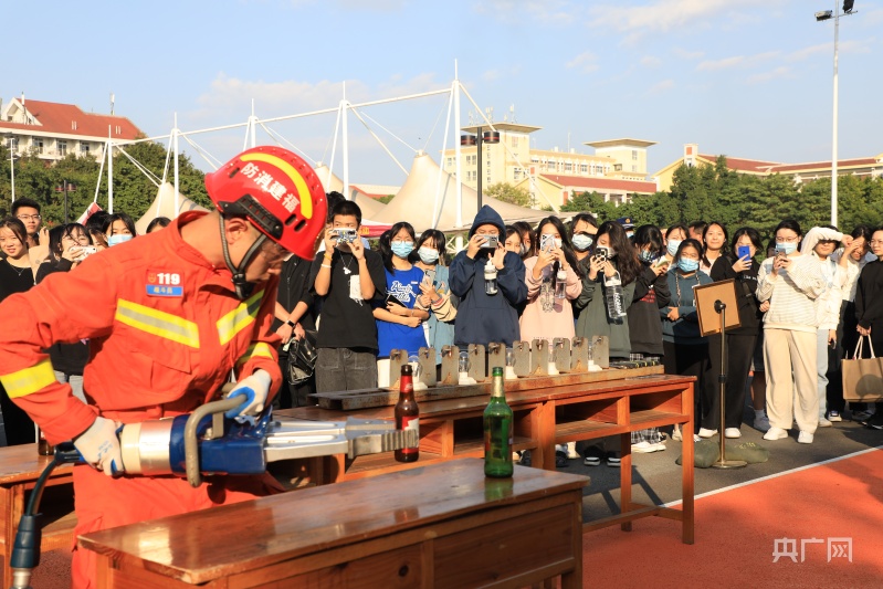 漳州卫生职业学院师生观看消防技能展示(央广网发 漳州消防供图)