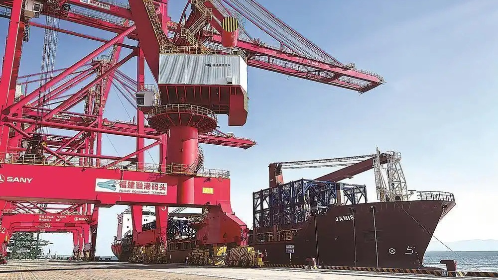 福州港首个零排放全电动码头迎来首艘外贸船舶