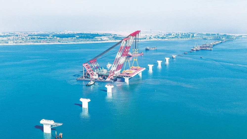 厦金大桥海上首榀钢箱梁吊装成功