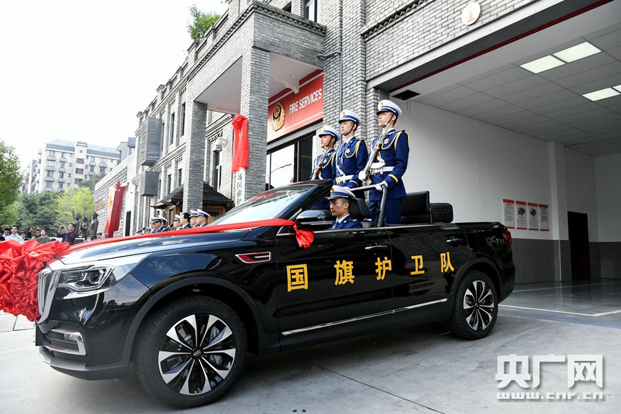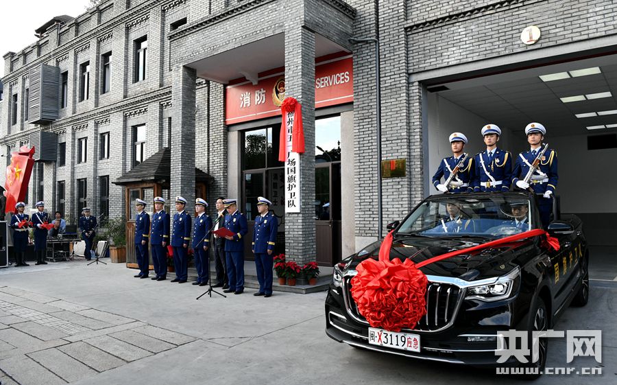 福州市五一广场国旗护卫队7日授牌亮相(央广网发 福建省消防救援总队供图)