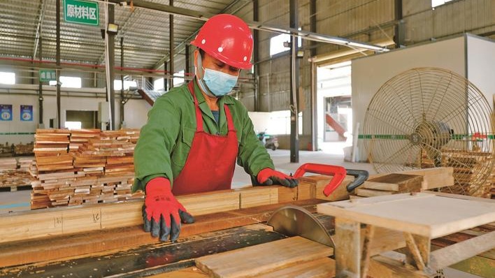 连日来,位于三明市宁化县石壁镇的三明万胜华家具有限公司生产车间一派繁忙,工人正在赶制一批砧板订单。