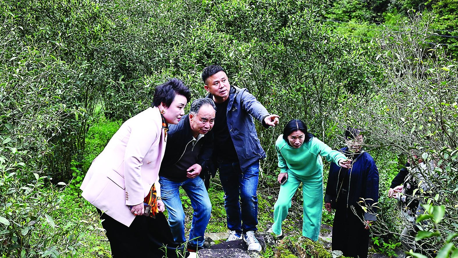 远离村落的山涧旁,几位深耕制茶行业的“专业游客”,正在茶园主人的带领下拾级而上,谈论古茶树的形态与长势。
