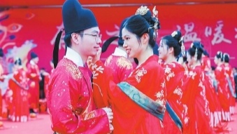 28日,2025年“有福之州 温暖榕城”集体婚礼在福州上下杭历史文化街区举行。
